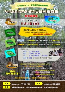 びわ湖トラストは、びわ湖源流の森観察会(2025年 きのこ観察会)の申込受付を開始します。